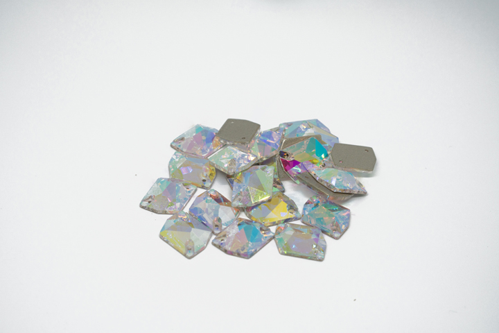 Aufnähstein – Cosmic – crystal AB – 13 mm x 17 mm
